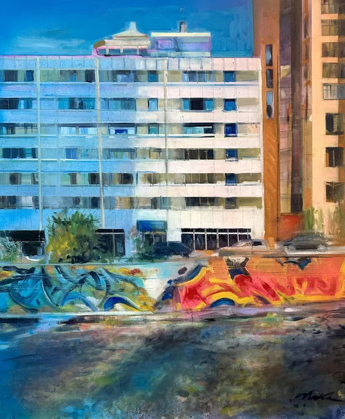 My Urban Landscapes are inspired by a continuation of the solitary bungalow. I became aware of the extended spaces outside the where we live and our relationship to them. Recently i did a show titled, Affected City Series where many of these works were displayed.